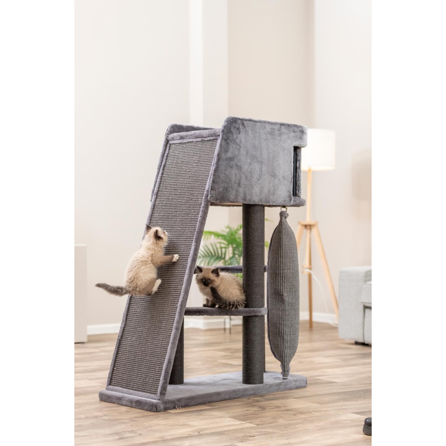 Trixie Active kattetårn 122 cm – solid og plassbesparende kloremøbel med klatrerampe, klatrepose, hule og komfortable hvileplasser.