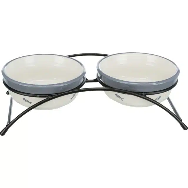 Dobbel matskål i keramikk. To varianter, 2 x 250ml og 2 x 300ml.