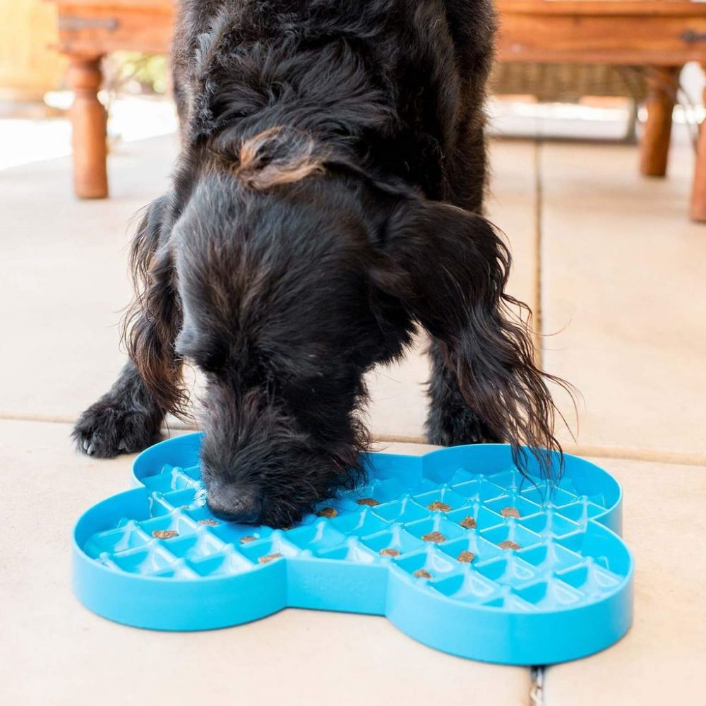 Lickimat matplate er en unik tilnærming til sakte spising. Matplaten har en mye større overflate enn standard boller (hele 35 x 26 cm!). All maten er vises og hunden trenger ikke “jage” den rundt i en bolle.