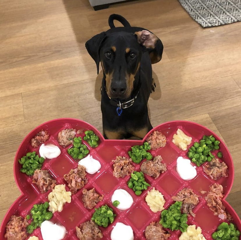 • Lickimat har firkantede lommer og er perfekt for servering av større stykker mat som kjøttdeig, våtmat eller fisk -i tillegg til alt av tørrfòr