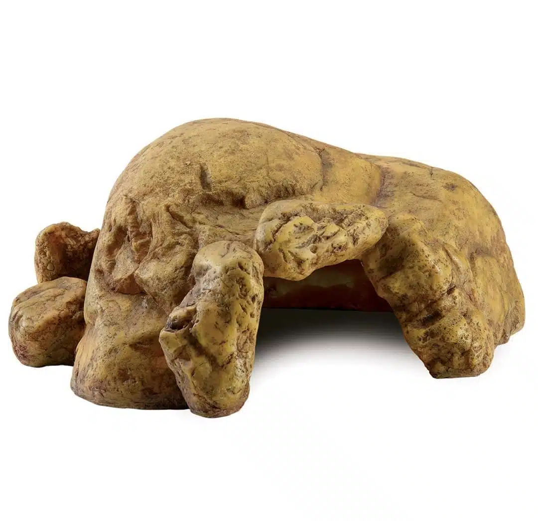 Et skikkelig gjemmested er en ofte undervurdert i et naturlig terrarium men faktisk noe av det viktigste. Uten et trygt sted å gjemme seg vil reptiler og amfibier enkelt kunne utvikle stress som vil påvirke deres aktivitet og appetitt. Exo Terra Reptil Cave har et realistisk design og et forstørret volum og føles som et naturlige gjemmested for reptiler og amfibier. Exo Terra Reptile Cave gir ly så vel som å tilby et kjøligere og mer fuktig mikroklima i terrariet ditt.