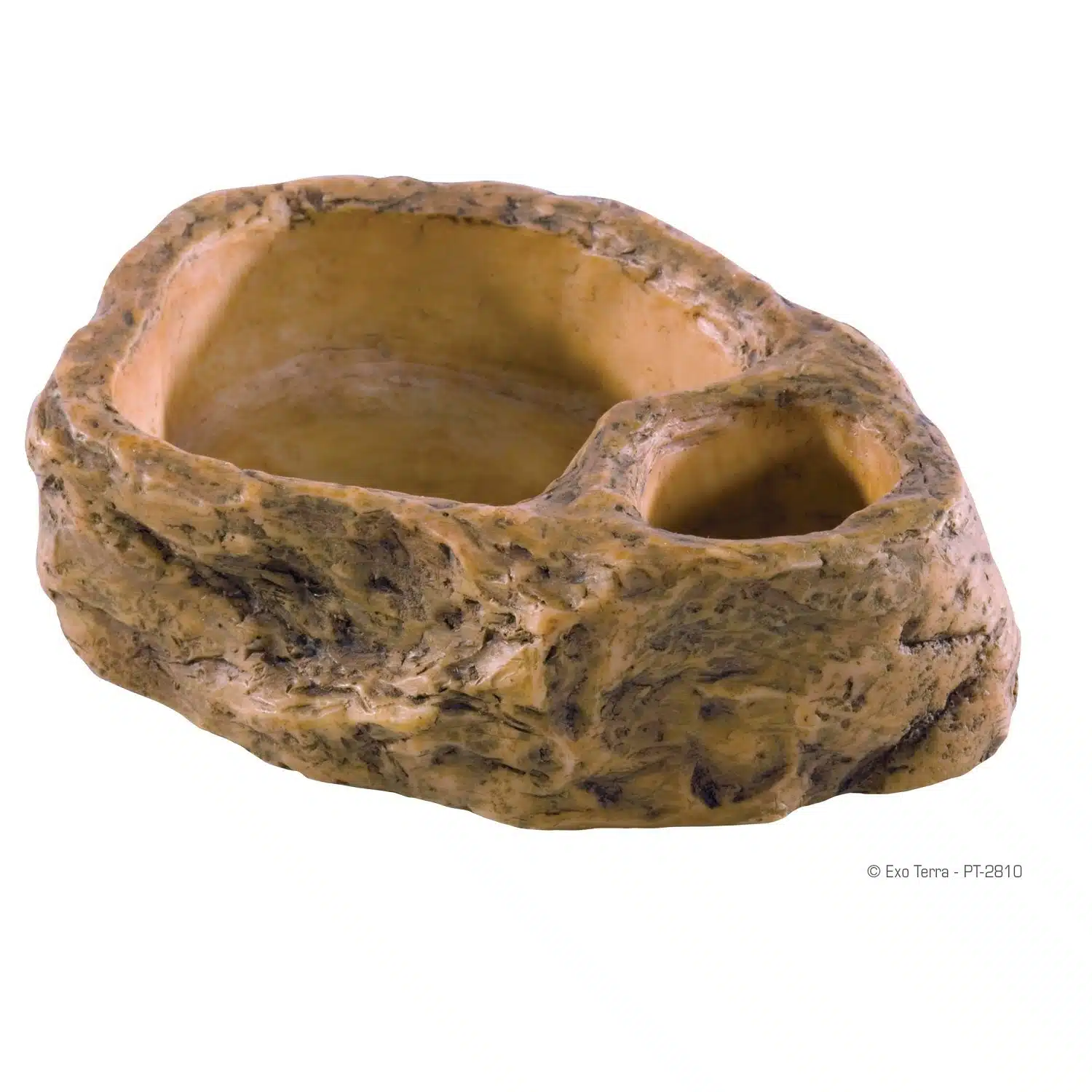 Exo Terras vann/matskåler er laget av harpiks og har en veldig naturlig og realistisk finish på utsiden og en jevn overflate på innsiden. Skålene er belagt for å hindre utvikling av skadelige bakterier og gjør det også enklere å rengjøre. Den nøytrale naturlige fargen gjør det enkelt å integrere i ørken, tropisk eller en hvilken som helst type terrarium. Mindre reptiler, amfibier og insekter kan ikke drukne pga en liten “trapp” nettopp for å forhindre dette.